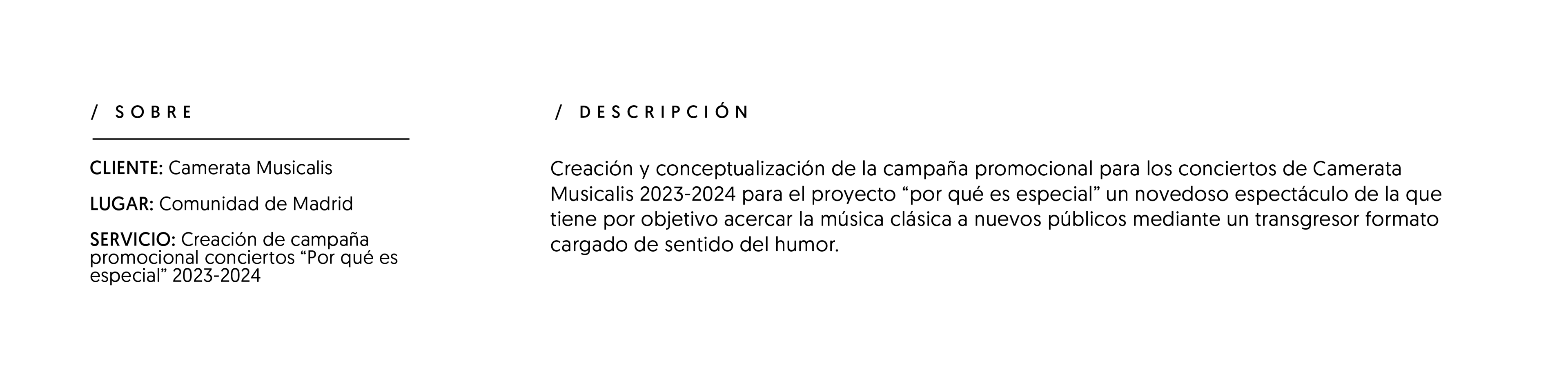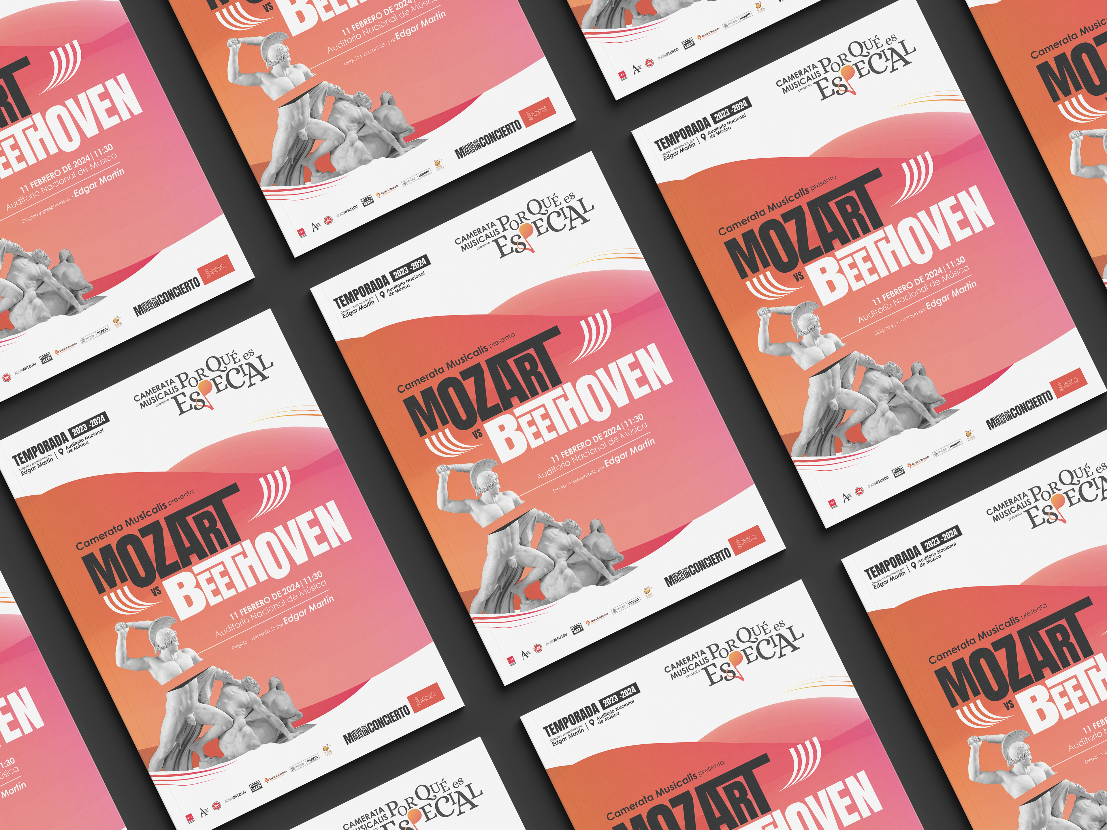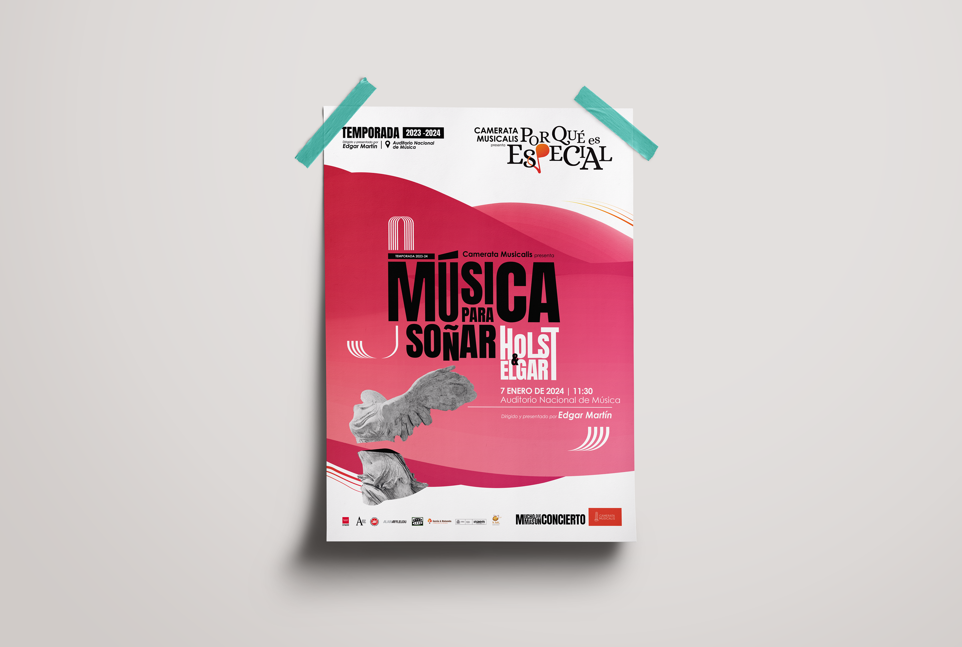 Diseño de materiales promocionales para la orquesta Camerata Musicalis, 'Por qué es especial. 2023 - 2024'.