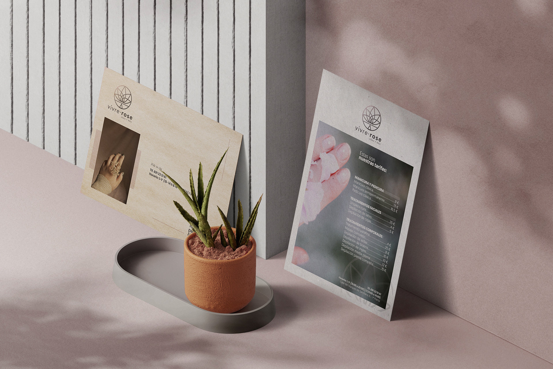 Creación de la imagen de marca de "Vivre Rose", tiendas ubicada en Colmenar Viejo y Tres Cantos enfocada a servicios de belleza.
